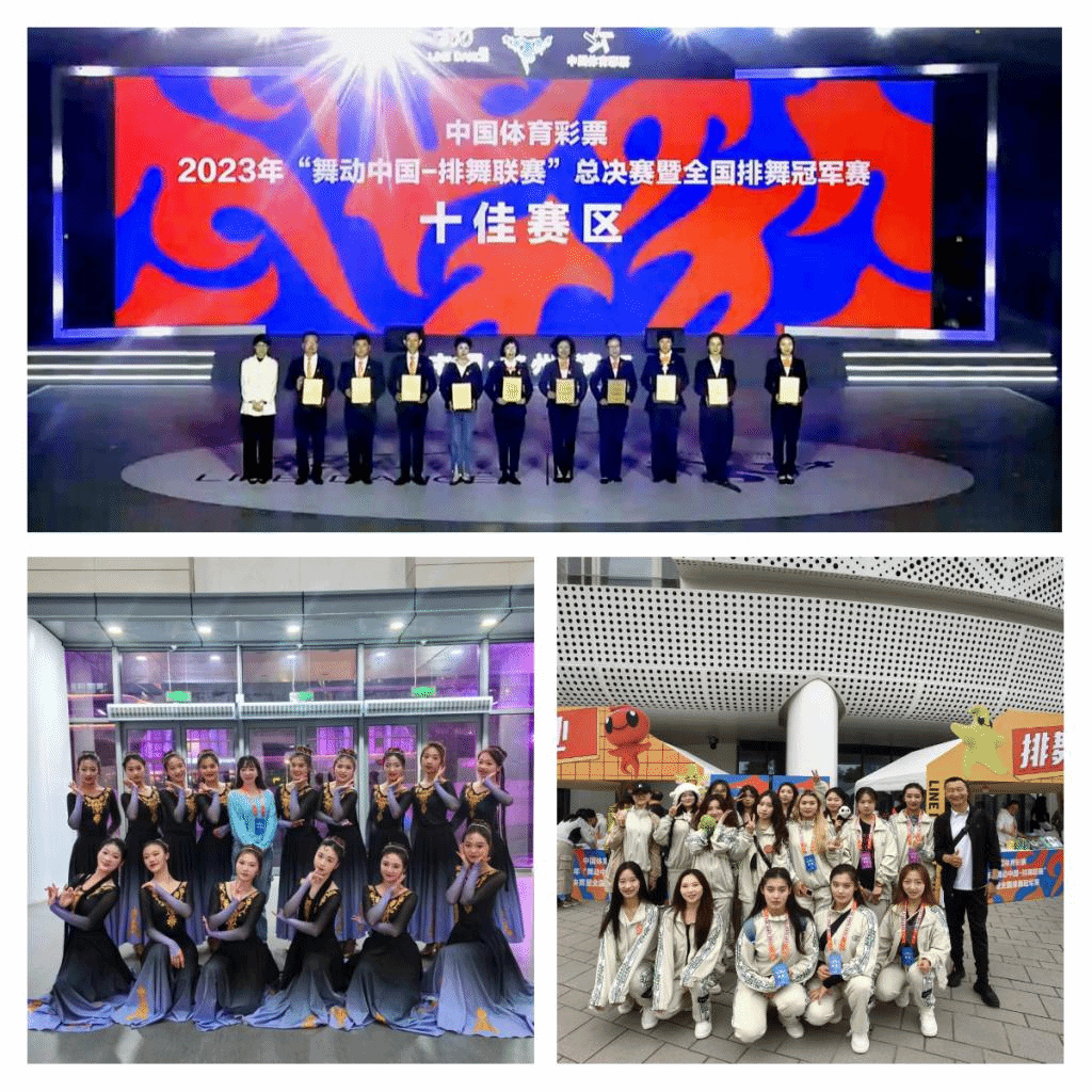 在校领导和各级主管部门的大力支持下,由H次元 和音乐学院联合组队,参加了自选、采风、开放3个项目的比赛,最终不负众望,获得了各组别第一名3个特等奖的优异成绩,特别是开放项目维吾尔族舞蹈《萄然而醉》获得了赛事第三高分,赢得了全场热烈的掌声。H次元 曹乐意、陈玉霞两位老师被组委会选调担任了总决赛的裁判工作。由H次元 和院属青海省全民健身操舞协会组织的2023年“舞动中国-排舞联赛”青海赛区喜获2023年“舞动中国-排舞联赛”总决赛暨全国排舞冠军赛“十佳赛区”殊荣。