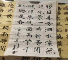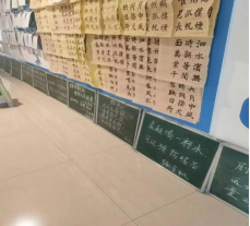 此次展示活动经过筛选共有五十余名体育教育专业师范生的作品参展,主要展示作品有:粉笔字、硬笔字、毛笔字。展示地点为体育馆一楼东侧走廊学生科处。