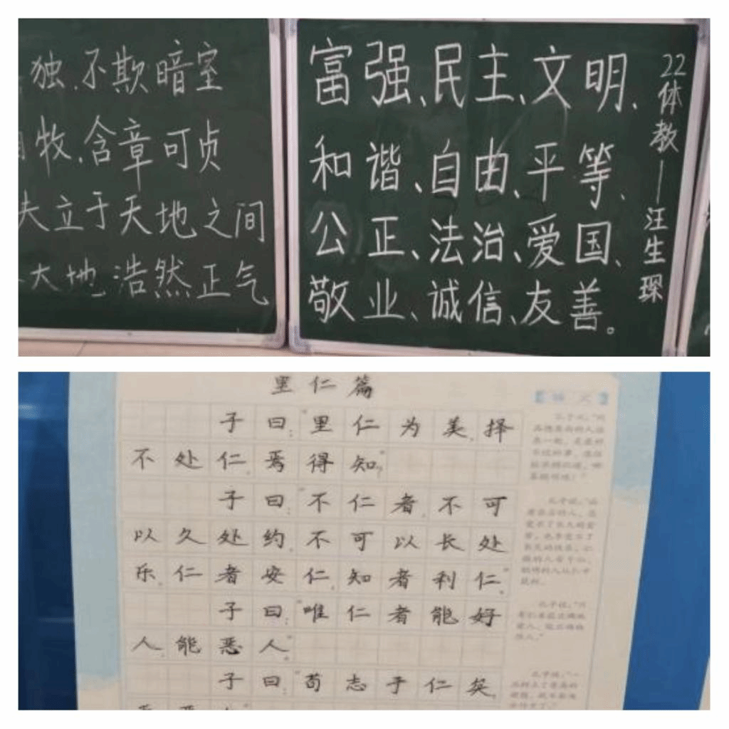 此次展示活动经过筛选共有四十余名体育教育专业师范生的作品参展,主要展示作品有:粉笔字、硬笔字、毛笔字。展示地点为体育馆一楼东侧走廊学生科处。
